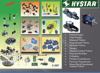 HYSTAR .. offers a solution for hydraulic control systems for the new and after markets, with a wide range of high quality products and an excellent customer service throughout a well-established worldwide distribution network.Their commitment to a continuous improvement of quality standards is achieved by manufacturing HYSTAR products in accordance with a strict quality control standard and rigorous testing. Serving the customer efficiently and quickly is our priority. Their directional control valves provide high performance and reliability and the valves can be solenoid, hydraulic, pneumatic, cam or manually operated. The precision-machined spools allow a complete interchangeability for maximum flexibility. Reliability is enhanced through high performance wet armature construction AC and DC solenoids. These powerful solenoids offer plug-in (DIN connector type 43650), terminal box or lead-wire type are available. Manual override pins and optional push-on protective caps. CETOP 3 (NFPA D03) and CETOP 5 (NFPA D05) versions are also available with a built-in ramp to reduce shock caused by abrupt change of oil flow at a very low cost, i.e. shockless type. Their modular valves series save space and reduce cost. Any type of hydraulic circuit can be installed without piping and fittings by stacking modular valves under the directional valve. A full range of in-line, threaded connection and subplate mounted, directional, flow, pressure control valves, pressure switches and pressure gauge is part of our range of hydraulic components. Manifold blocks and subplates complete the range.