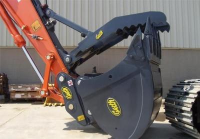 with added benifits of an auto slide system. The auto slide system enables the operator to easily release the thumb to one of the multiple pre-set positions and when done fold the thumb back to its store position by turning the lever and curling the bucket. This product is available fr a wide range of excavators and backhoe loaders.